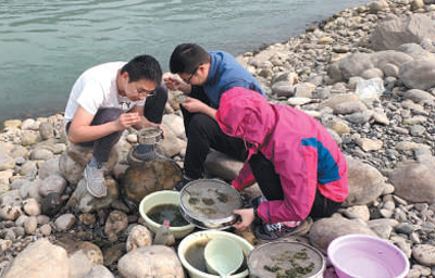 科研人員在金沙江流域進(jìn)行魚卵收集和分揀工作。