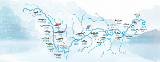 長江流域主要珍稀特有魚類和典型經(jīng)濟魚類分布示意圖。