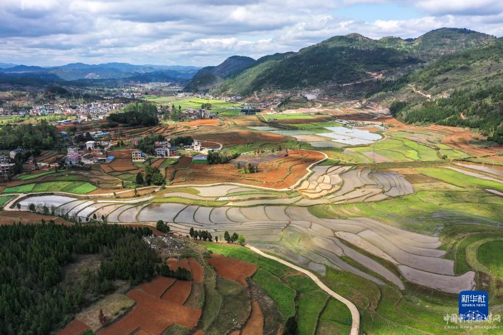 這是4月6日在貴州省岑鞏縣水尾鎮(zhèn)新場村拍攝的雜交水稻制種基地(無人機照片)。