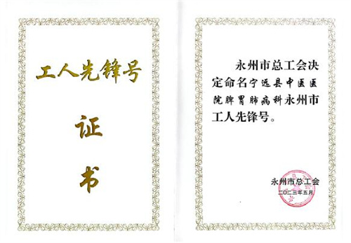 寧遠縣中醫(yī)醫(yī)院脾胃肺病科獲“永州市工人先鋒號”榮譽