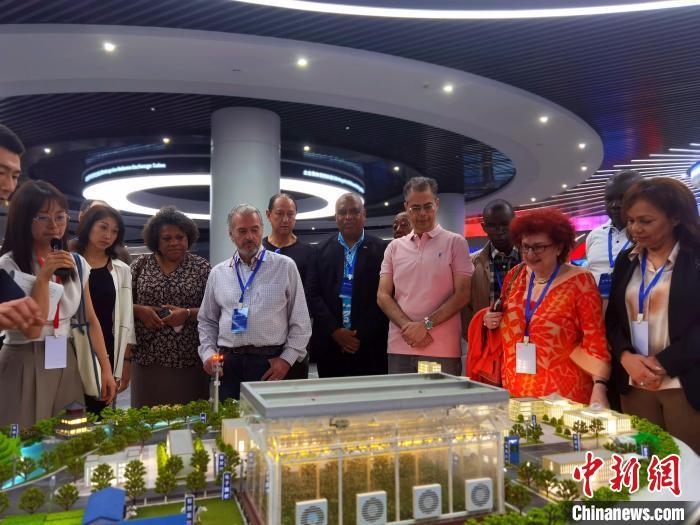 6月4日,駐華使節(jié)參訪團(tuán)在貴陽參觀國(guó)家大數(shù)據(jù)(貴州)綜合試驗(yàn)區(qū)展示中心。中新社記者 周燕玲 攝