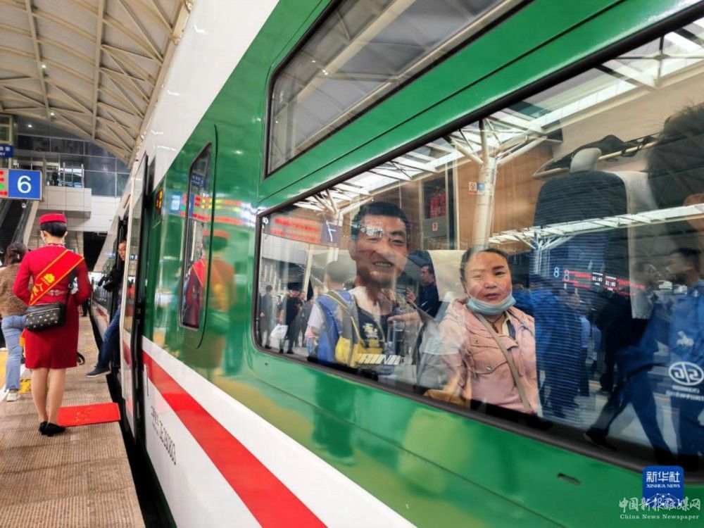 7月1日,C891次西寧至格爾木動(dòng)車組列車上的乘客等待出發(fā)。