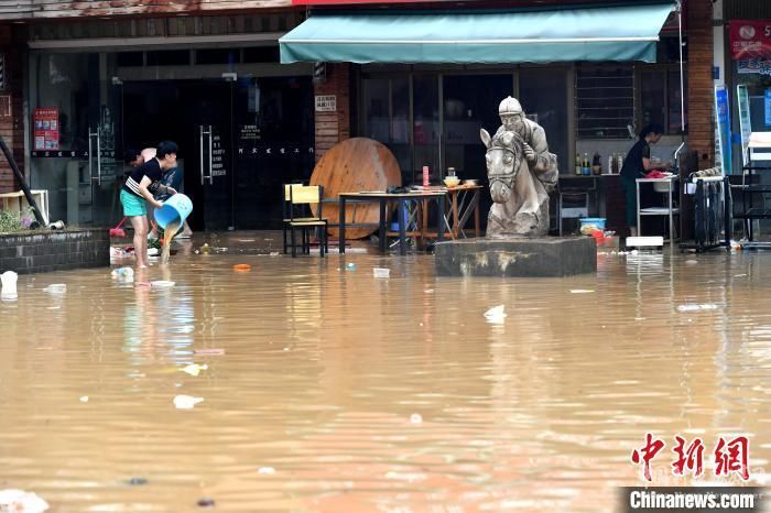 7月29日,受今年第5號(hào)臺(tái)風(fēng)“杜蘇芮”影響,福州市閩侯縣南嶼鎮(zhèn)忠觀街出現(xiàn)內(nèi)澇積水,許多店鋪被淹。積水退去后,市民積極開(kāi)展生產(chǎn)自救。