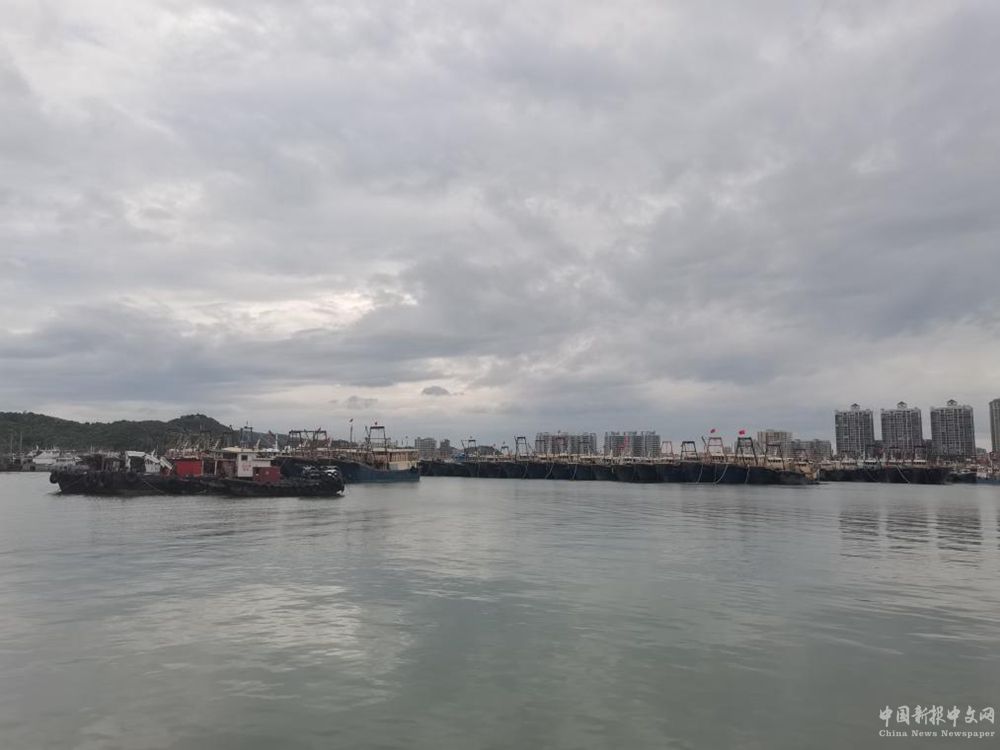 8月31日,廣東省汕尾市城區(qū)天空陰云密布,大量漁船歸港避風(fēng)。新華社記者 詹奕嘉 攝