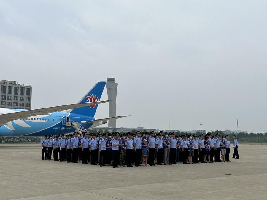 圖為民警押解犯罪嫌疑人在鄭州新鄭國際機場集結(jié)。新華社記者 馮家順 攝