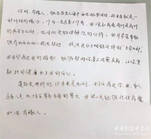 10月17日下午三點,在家人的陪伴下,曾卓手捧鮮花緩緩走出醫(yī)院的采集病房。腳步很慢,卻丈量出了一份偉大的愛。“希望通過我的捐獻,能夠幫助你真正治愈疾病,讓你重新找回健康和生活的信心。”曾卓寫了一封信,這封信將與他的造血干細胞一起,帶到患者的身邊,他在信里為患者加油打氣。
