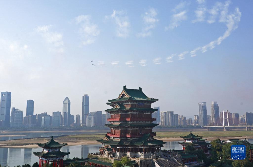 當(dāng)日,2023中國(guó)航空產(chǎn)業(yè)大會(huì)暨南昌飛行大會(huì)組織空軍航空大學(xué)“紅鷹”飛行表演隊(duì)與歐洲環(huán)球之星特技飛行表演隊(duì)駕駛飛機(jī)在南昌市區(qū)上空進(jìn)行了特技飛行表演,飛越滕王閣上空。
