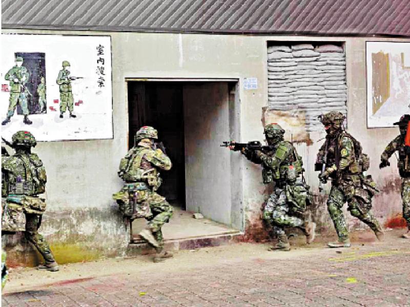 圖:臺(tái)軍退役中將帥化民表示,萬(wàn)一打起巷戰(zhàn),臺(tái)灣老百姓一天都不會(huì)撐。圖為臺(tái)軍在訓(xùn)練。\資料圖片