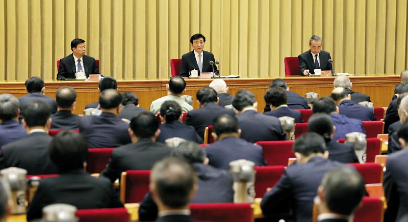 圖:5月9日至10日,2023年對臺工作會議在北京召開。中共中央政治局常委、全國政協(xié)主席王滬寧出席會議并講話。\新華社