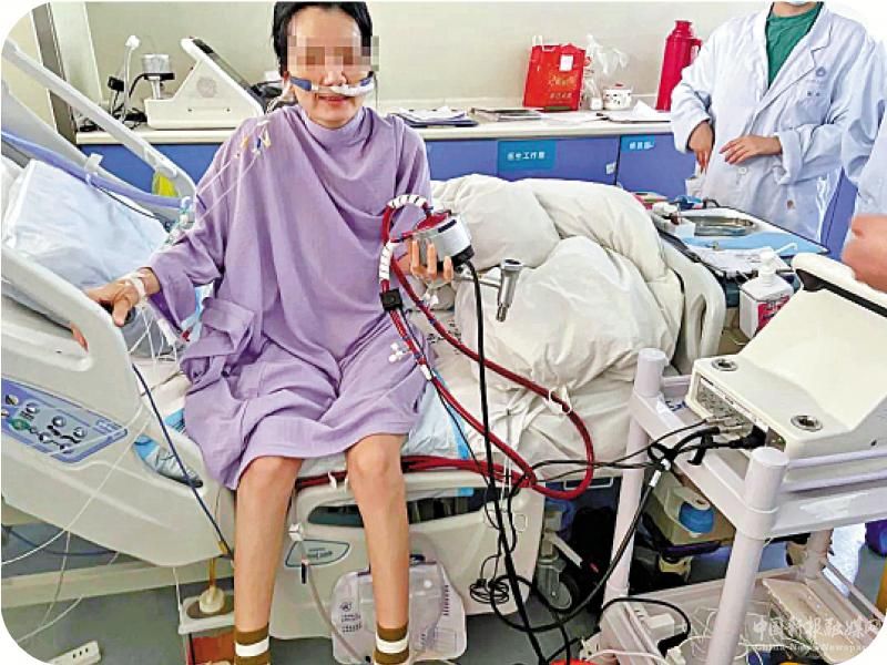 圖:2021年6月,武漢協(xié)和醫(yī)院為心衰患者程女士施行體外磁懸浮人工心臟手術(shù),并于12天后成功實施心臟移植手術(shù)。/受訪者供圖
