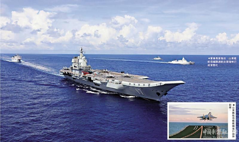圖:(大)軍事專家指出,山東艦航母編隊(duì)過航臺灣海峽已成常態(tài)化。 圖:(細(xì))山東艦航母艦載機(jī)進(jìn)行起降訓(xùn)練。