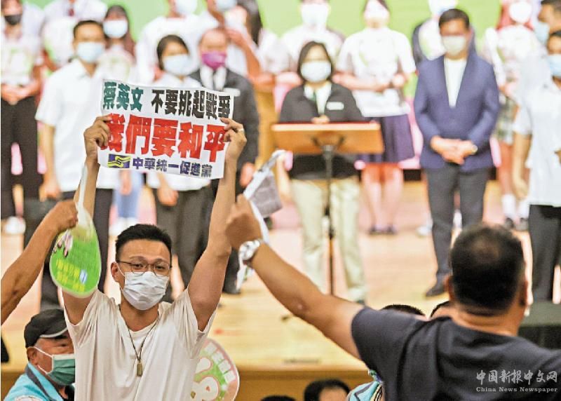 圖:去年8月民進黨當(dāng)局領(lǐng)導(dǎo)人蔡英文舉行宣講會時,臺灣民眾手舉標語并高呼“要和平”抗議,現(xiàn)場隨即爆發(fā)肢體沖突。\資料圖片