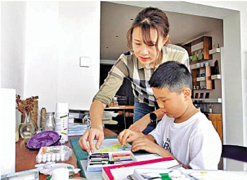 圖:吳婷婷在指導(dǎo)小朋友畫(huà)畫(huà)。\中新社
