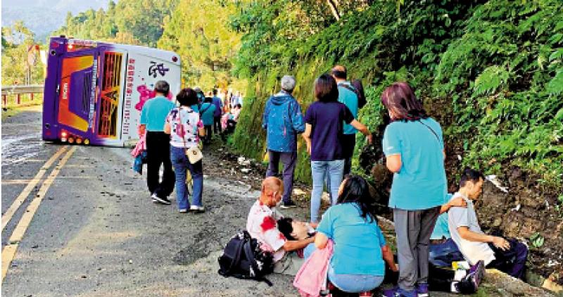圖:一輛游覽車5日在宜蘭縣太平山風景區(qū)旅游發(fā)生車禍。\中通社