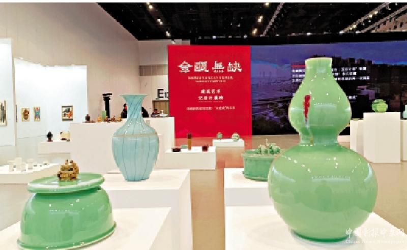 圖:“金甌無缺”海峽兩岸青年當(dāng)代與文化創(chuàng)意展于2023兩岸企業(yè)家峰會期間舉行。\大公報記者賀鵬飛攝