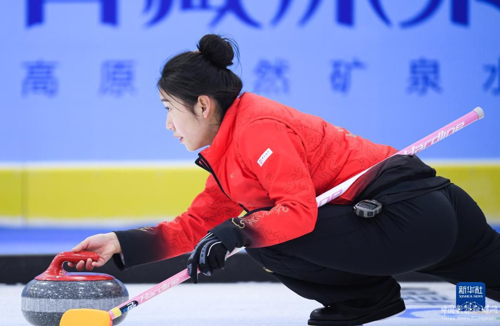 1月8日,國家集訓(xùn)隊(duì)隊(duì)員李永潔在比賽中擲壺。最終,國家集訓(xùn)隊(duì)以8比3戰(zhàn)勝吉林隊(duì)。新華社記者 吳剛 攝
