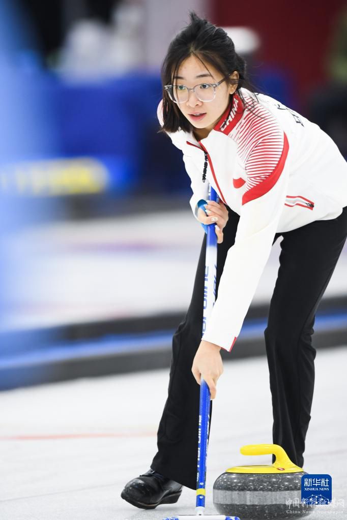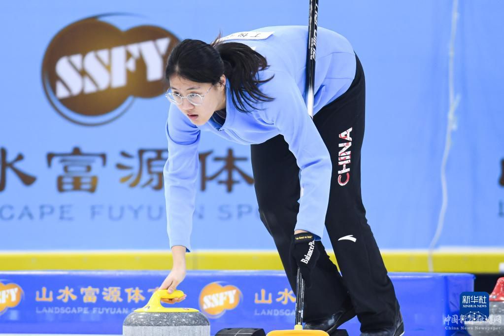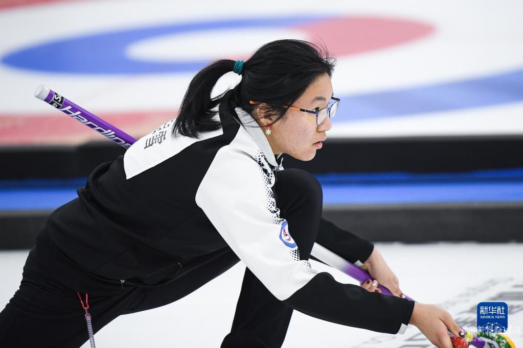 1月8日,上海隊(duì)隊(duì)員陳早雪在比賽中擲壺。最終,天津隊(duì)以6比4戰(zhàn)勝上海隊(duì)。新華社記者 吳剛 攝