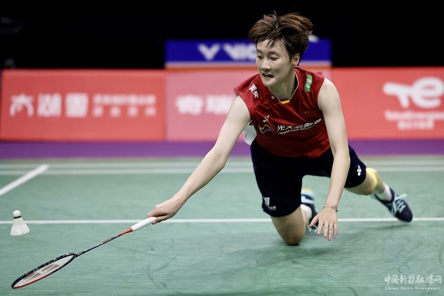 中國(guó)隊(duì)選手陳雨菲在女單比賽中。(多重曝光)中國(guó)日?qǐng)?bào)記者 魏曉昊 攝