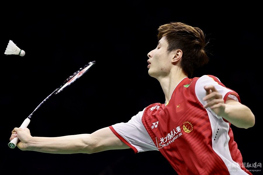 中國(guó)隊(duì)選手石宇奇在男單比賽中。中國(guó)日?qǐng)?bào)記者 魏曉昊 攝
