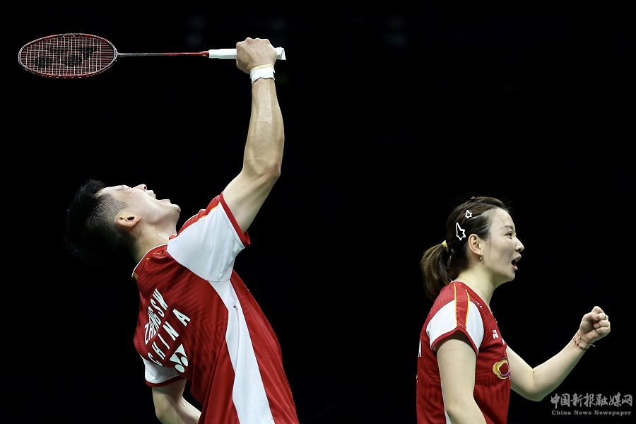 中國(guó)隊(duì)混雙組合鄭思維(右)/ 黃雅瓊在混雙比賽中。中國(guó)日?qǐng)?bào)記者 魏曉昊 攝