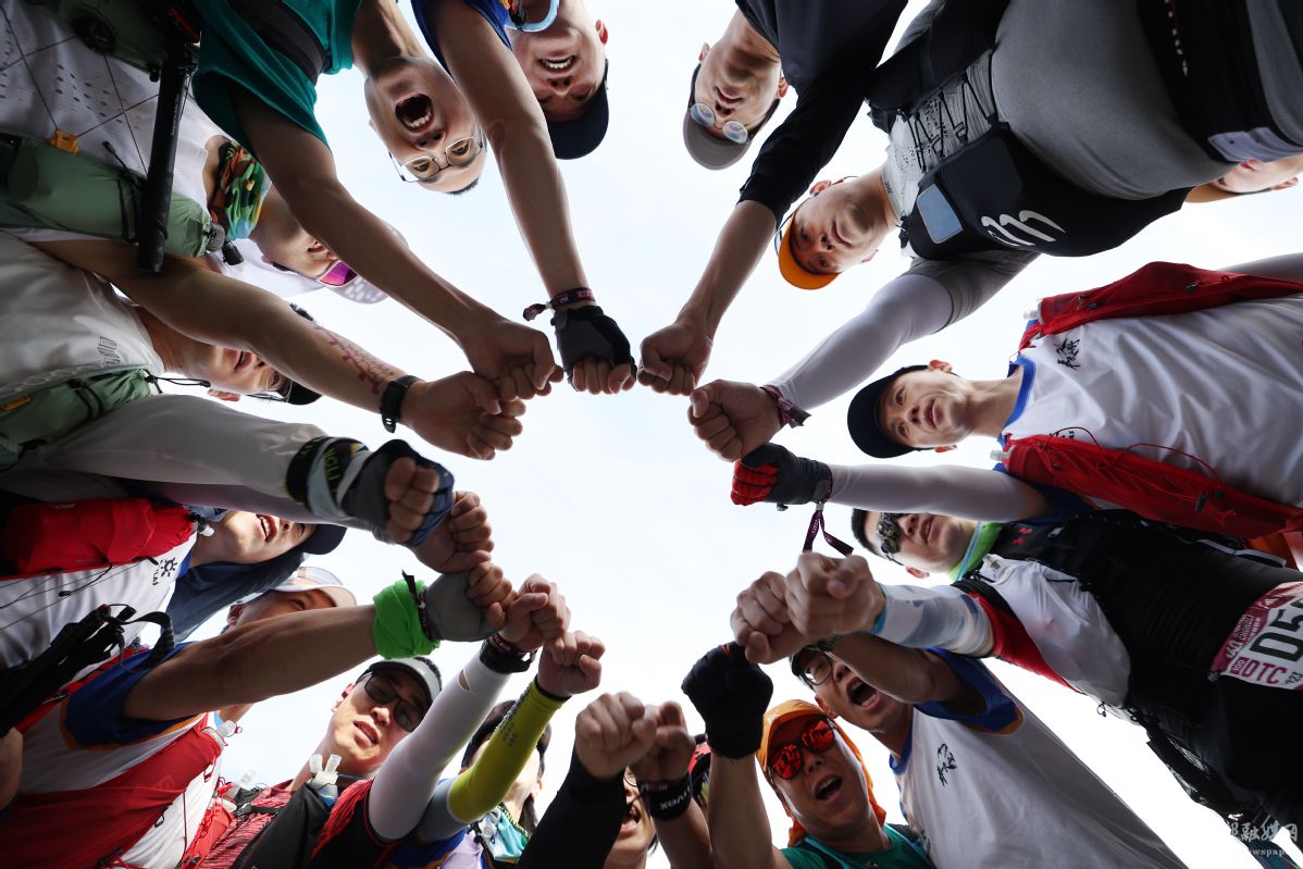 7月7日,100公里組,選手們在出發(fā)前相互加油。中國日報記者 魏曉昊 攝