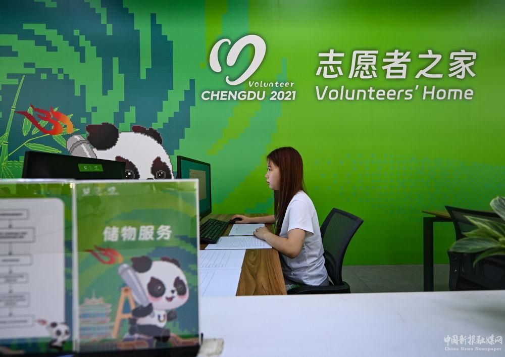 7月15日,在大運(yùn)村志愿者之家,一名志愿者在工作。新華社記者 王曦 攝