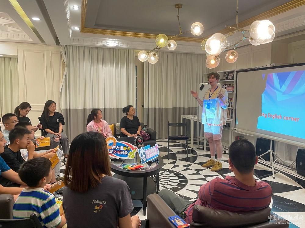 7月13日,丁小?。ㄓ叶┰诔啥纪╄髁謬?guó)際社區(qū)鄰里中心書(shū)院的英文課堂上。新華社發(fā)(桐梓林國(guó)際社區(qū)供圖)