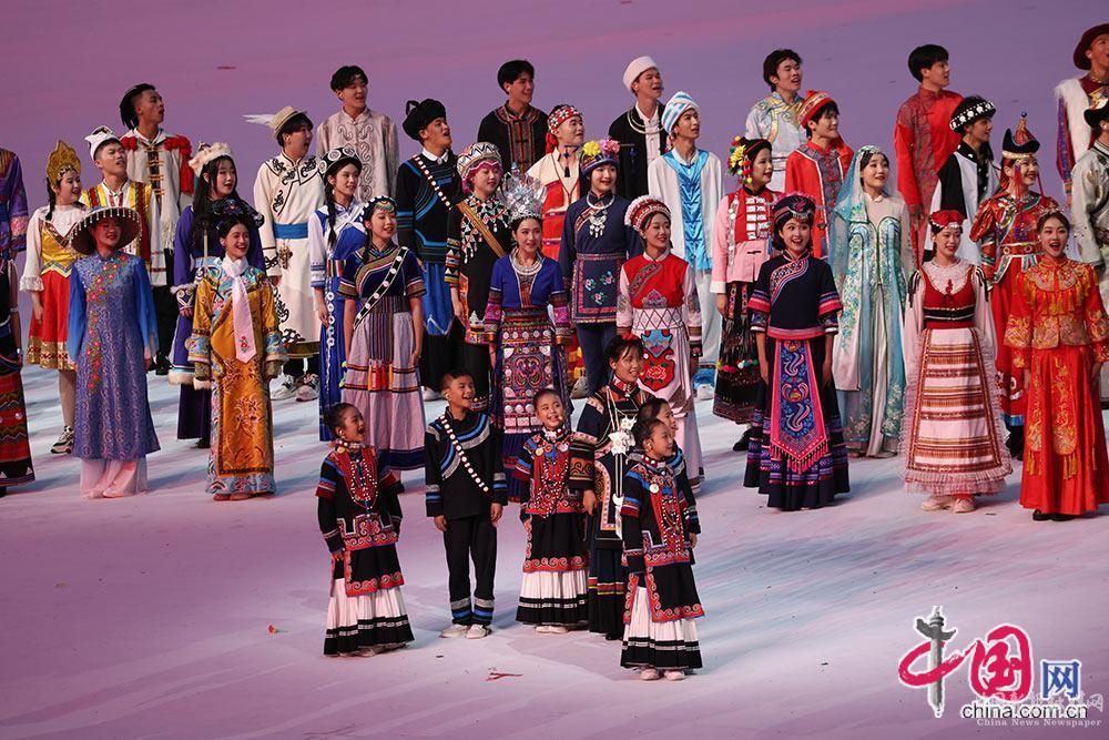 7月28日,第三十一屆世界大學(xué)生夏季運動會開幕式現(xiàn)場,56個民族青年齊唱《歌唱祖國》。中國網(wǎng) 倫曉璇攝影