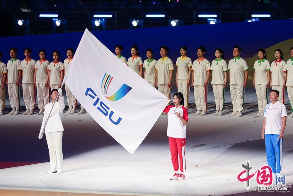 7月28日,第三十一屆世界大學(xué)生夏季運動會開幕式現(xiàn)場,中華人民共和國國旗入場。中國網(wǎng) 倫曉璇攝影