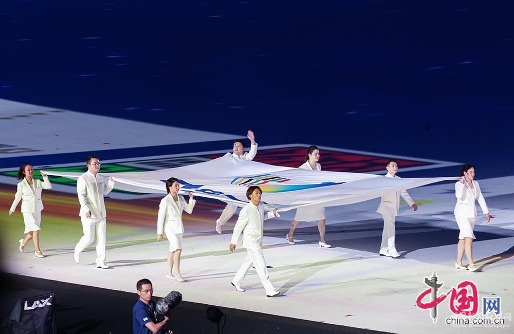國際大學(xué)生體育聯(lián)合會會旗入場。中國網(wǎng) 倫曉璇攝影