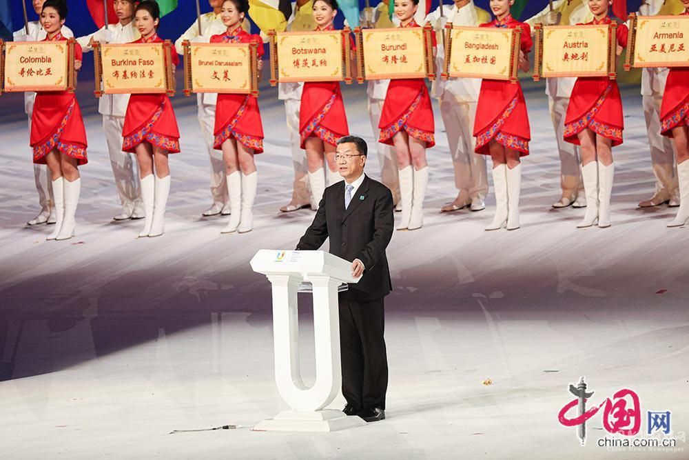 成都第31屆世界大學(xué)生夏季運動會組委會主席致辭。中國網(wǎng) 倫曉璇攝影