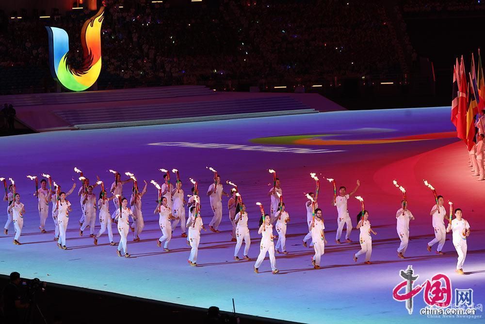 7月28日,第三十一屆世界大學(xué)生夏季運動會開幕式現(xiàn)場,大運會火炬入場。中國網(wǎng) 倫曉璇攝影