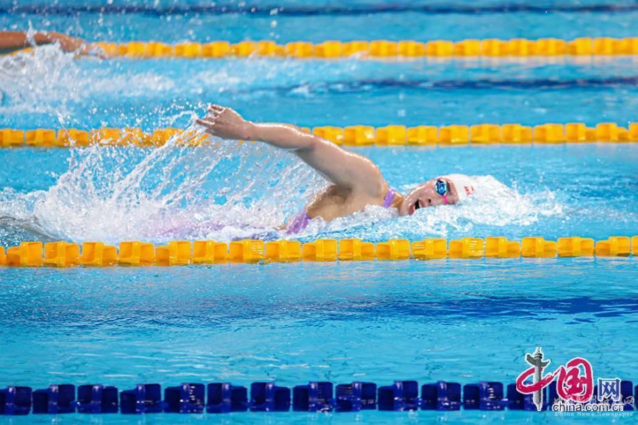 8月1日,成都大運(yùn)會(huì)女子4×100米自由泳接力決賽舉行,中國選手張雨霏正在比賽中。中國網(wǎng)記者 倫曉璇 攝