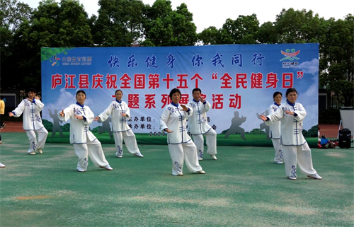 2023年8月8日,立秋日,清晨清風習習,安徽省合肥市廬江縣慶祝全國第十五個“全民健身日”主題武術(shù)展演活動在廬城黃山南路全民健身中心舉行,活動由廬江縣教育體育局主辦、廬江縣武術(shù)運動協(xié)會承辦,活動突出“快樂健身,你我同行”主題,有10支隊伍150余名武術(shù)健身愛好者展演了傳統(tǒng)武術(shù)、太極拳、太極劍、廣場舞、健身氣功、體育舞蹈、柔力球等健身項目。