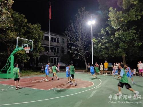 中國(guó)新報(bào)湖南訊(通訊員 黃展徠 薛云松 李科)“好球!”“進(jìn)了!進(jìn)了!”加油喝彩聲此起彼伏……8月15日晚,湖南省郴州市宜章縣黃沙鎮(zhèn)沙坪村少年隊(duì)與迎春鎮(zhèn)承啟紅軍小學(xué)少年隊(duì)的籃球賽在黃沙鎮(zhèn)沙坪村原村小學(xué)的籃球場(chǎng)開賽。球場(chǎng)上,一群小球員積極進(jìn)攻和嚴(yán)密防守將比賽推向了高潮,吸引了眾多觀眾前來(lái)觀賽,現(xiàn)場(chǎng)氣氛非常熱烈。