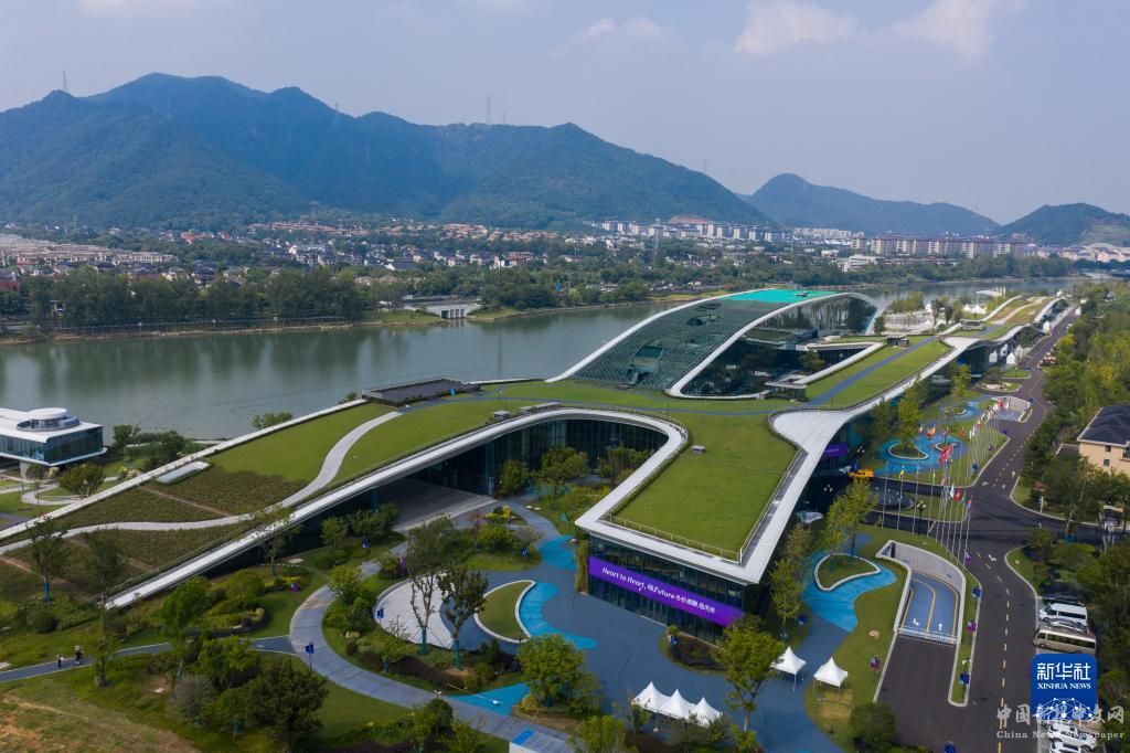 8月24日,空中俯瞰杭州富陽(yáng)水上運(yùn)動(dòng)中心,屋頂被綠植覆蓋(無(wú)人機(jī)照片)。