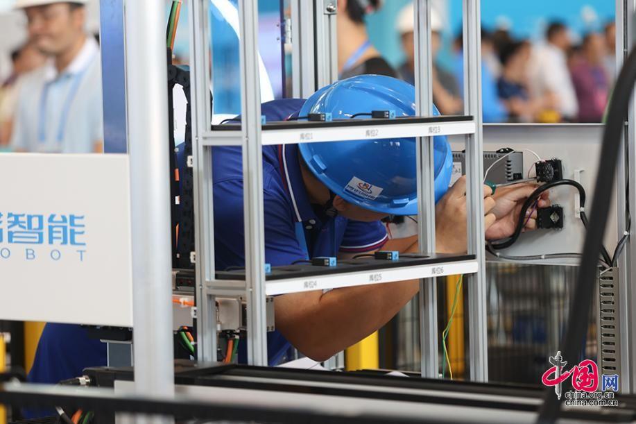 9月16日,第二屆全國技能大賽在天津開賽。圖為工業(yè)機(jī)器人系統(tǒng)操作項(xiàng)目選手正在參加比賽。中國網(wǎng)記者 倫曉璇 攝