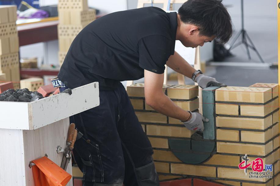 9月16日,第二屆全國技能大賽在天津開賽。圖為砌筑項(xiàng)目選手正在參加比賽。中國網(wǎng)記者 倫曉璇 攝