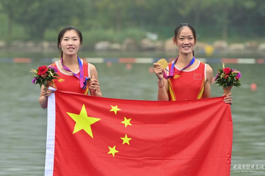 9月24日,鄒佳琪(左)/邱秀萍在頒獎(jiǎng)儀式上。新華社記者 江漢 攝