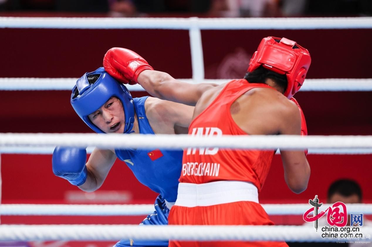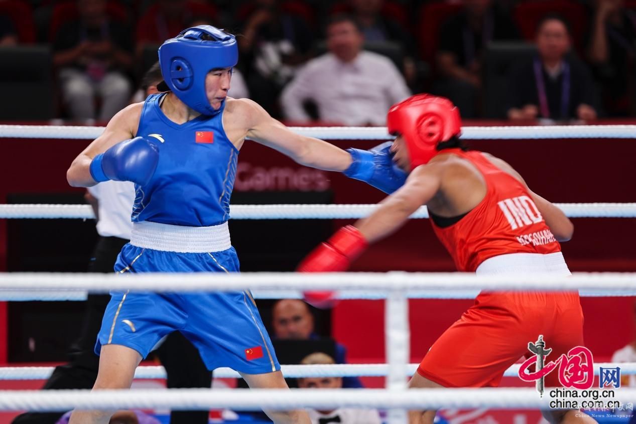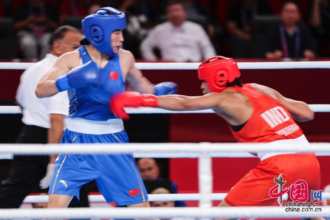 10月4日,在杭州亞運(yùn)會(huì)拳擊項(xiàng)目女子75公斤級(jí)決賽中,東京奧運(yùn)會(huì)銀牌得主、中國(guó)選手李倩戰(zhàn)勝印度選手洛夫利娜·博爾戈哈因,獲得冠軍。中國(guó)網(wǎng)記者 董寧攝影
