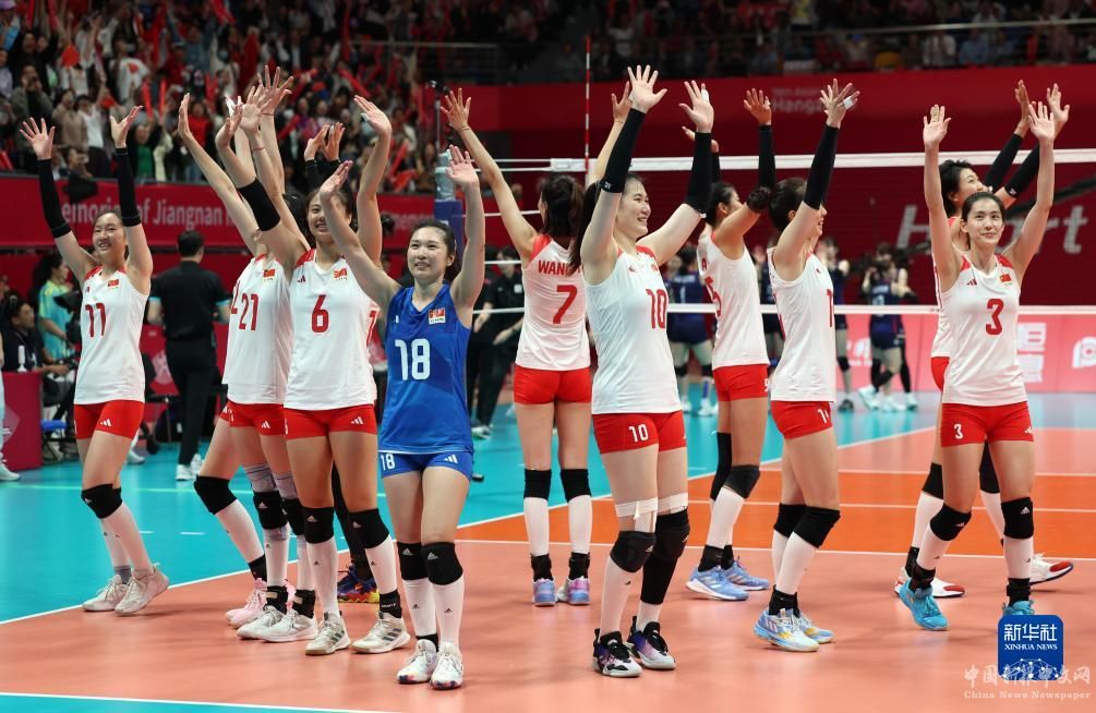 當(dāng)日,在杭州亞運(yùn)會女子排球決賽中,中國隊(duì)以3比0戰(zhàn)勝日本隊(duì),獲得冠軍。