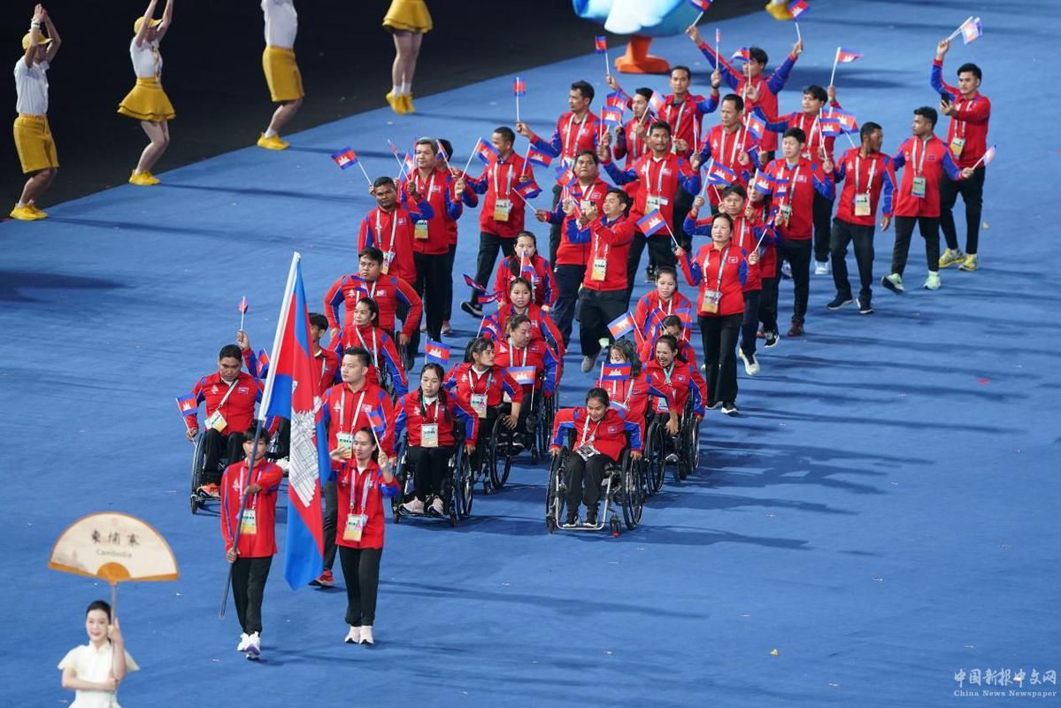 10月22日,柬埔寨代表團(tuán)在開(kāi)幕式上入場(chǎng)。中國(guó)日?qǐng)?bào)記者 高爾強(qiáng) 攝