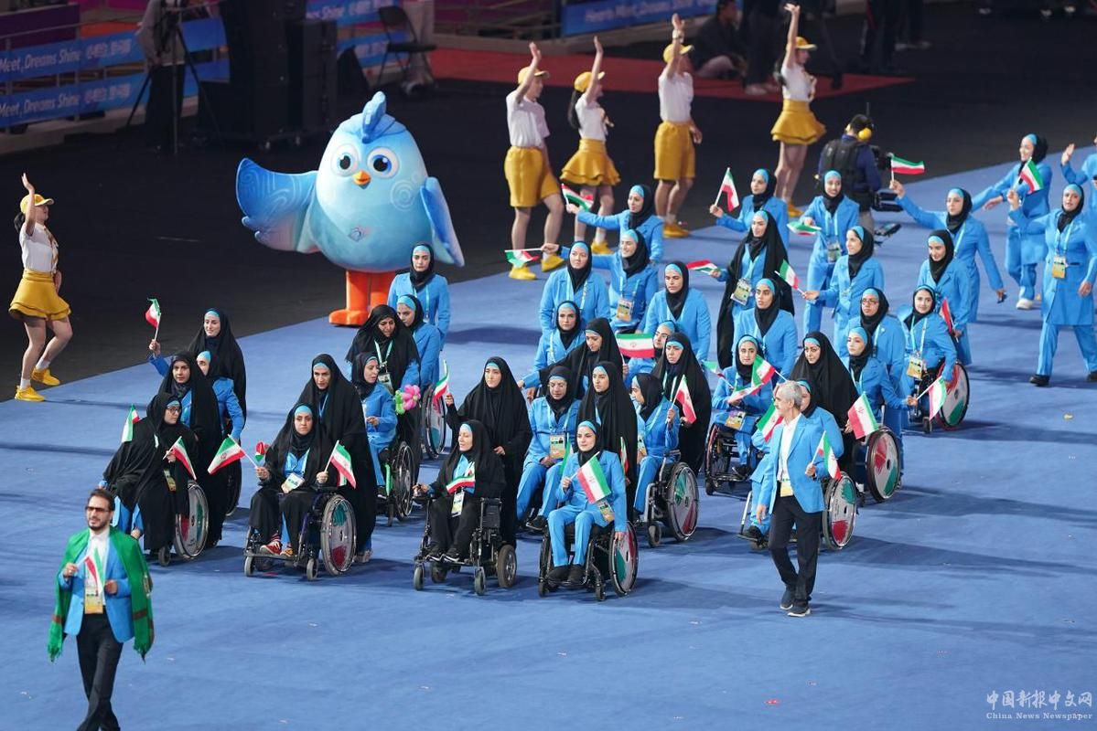 10月22日,伊朗代表團(tuán)在開(kāi)幕式上入場(chǎng)。中國(guó)日?qǐng)?bào)記者 高爾強(qiáng) 攝