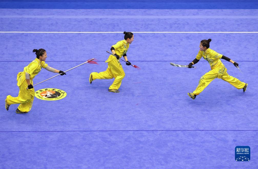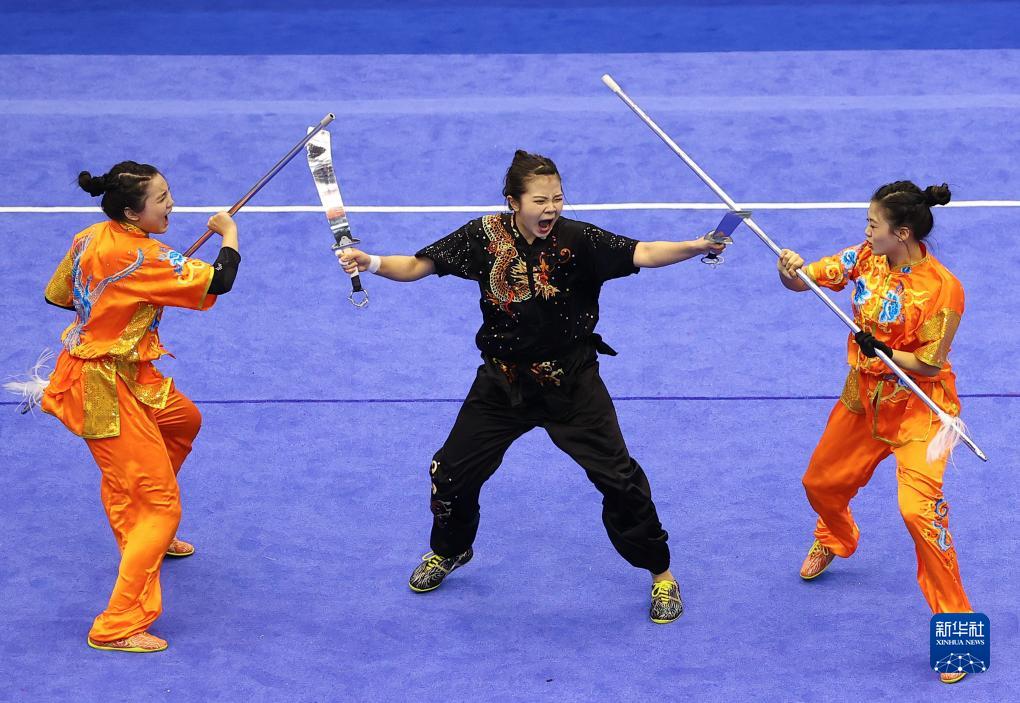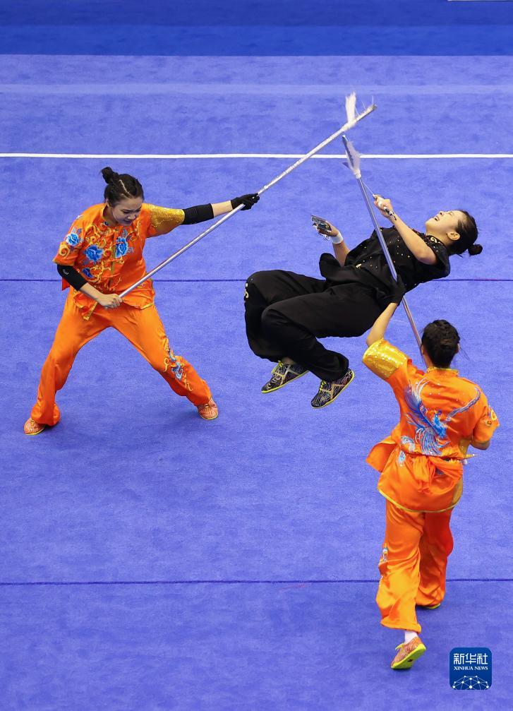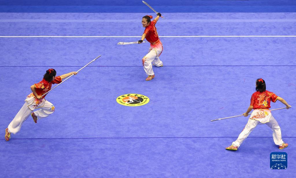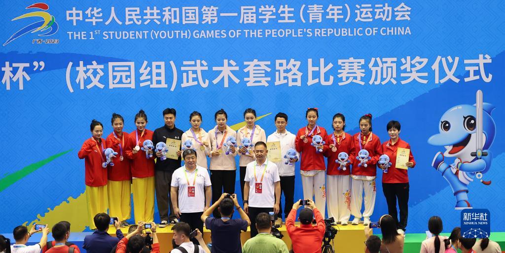 當日,第一屆全國學(xué)生(青年)運動會大學(xué)組女子對練決賽在廣西壯族自治區(qū)體育館舉行。