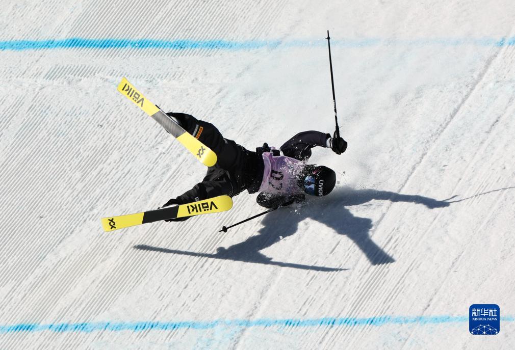 11月30日,意大利選手弗洛拉·塔巴內(nèi)利在自由式滑雪大跳臺(tái)世界杯女子組預(yù)賽中摔倒,她以151.00分的成績晉級(jí)決賽。新華社記者 張晨霖 攝