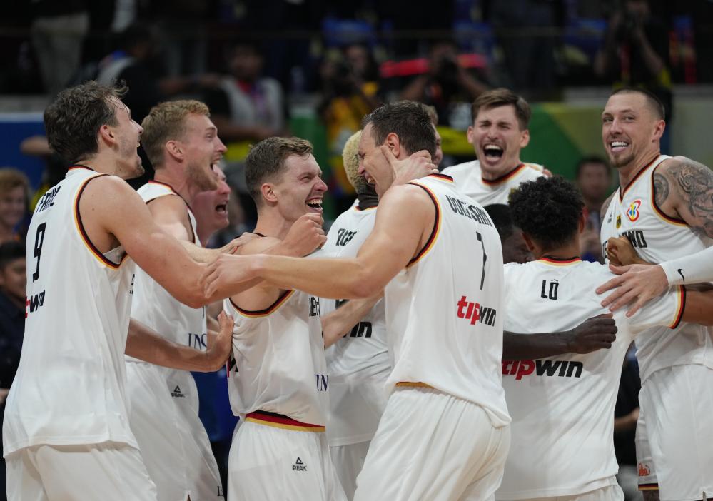 這是2023年9月10日,德國(guó)隊(duì)在籃球世界杯決賽中慶祝奪冠。新華社記者 孟永民 攝