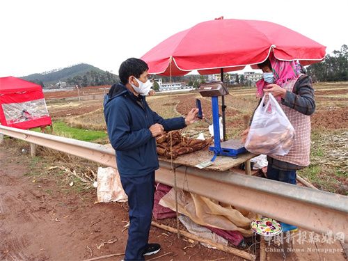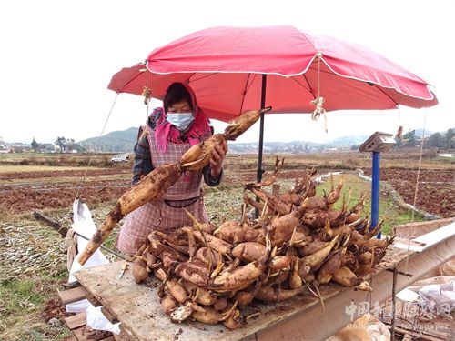 “今年我家種植了4畝蓮藕,從10月底就開始采挖,老伴和孫子到楚雄市、南華縣等地售賣,我在這里將就擺攤賣賣,賣價每公斤5至8元不等,春節(jié)前就能采挖賣完了,全部賣完后可能有4萬多元的收入”奚林昌老伴李大嬸欣喜地說道。她介紹說,我們村植種的蓮藕品種好,不施化肥,只施農(nóng)家肥,藕身肥長,藕色白亮,藕粉含量高,易煮熟,口感好,過往的行人都喜歡買點回去嘗嘗。