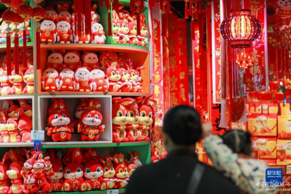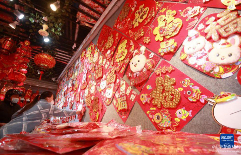 1月9日,在湖南省永州市道縣商貿(mào)城,居民在選購春節(jié)飾品。新華社發(fā)(何紅福 攝)
