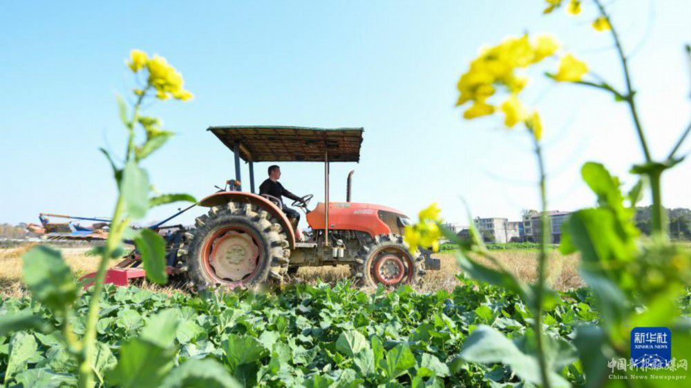1月28日,湖南省常寧市三角塘鎮(zhèn)江南村村民駕駛農(nóng)機(jī)在翻耕農(nóng)田。