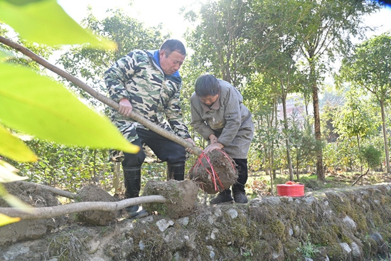 1月30日,湖南省隆回縣金石橋鎮(zhèn)大田村湘元綠香美彩苗圃種苗場(chǎng)負(fù)責(zé)人賀湘元與社員,在地里忙碌著為客商采挖金絲楠木和扎捆樹蔸,以便增強(qiáng)樹木成活率。 大田村60多歲的花卉苗木專業(yè)戶賀湘元,從2002年開始從事花卉苗木繁育,是從事花木繁育二十多年的“弄花人”。對(duì)花木品種繁育情有獨(dú)鐘,每年從外地引進(jìn)新品種進(jìn)行繁育試驗(yàn),至今他的苗圃基地繁育了五六十個(gè)珍稀名貴花木品種,形成了五彩繽紛的世界。經(jīng)過(guò)長(zhǎng)時(shí)間的實(shí)踐與探索,賀湘元繁育珍稀名貴花木積累了一定的經(jīng)驗(yàn),成了遠(yuǎn)近聞名的花木“土專家”。